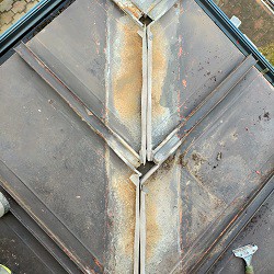 棟の板金を外したところ水の侵入により腐食していました。